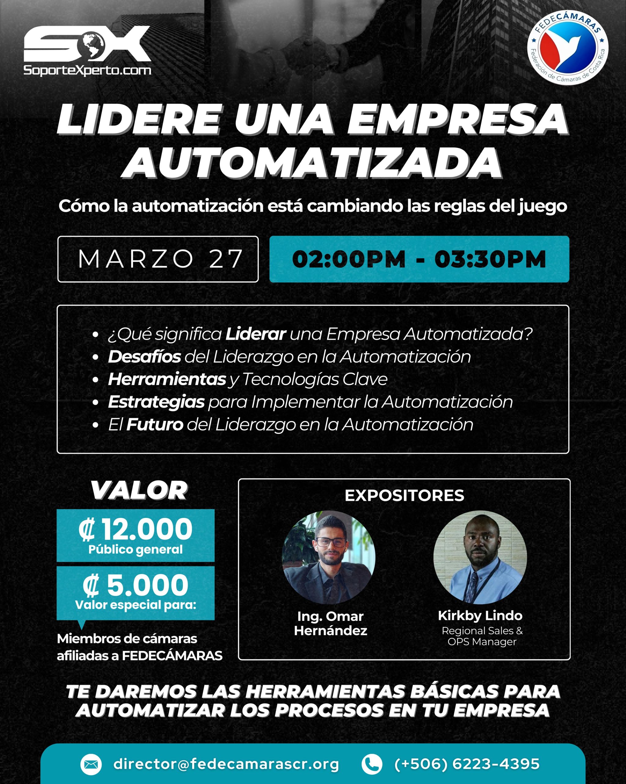 Acompáñenos en esta charla y conozca los múltiples beneficios de implementar la automatización en su empresa: Aumento de productividad y rentabilidad Mejora de la calidad y la precisión en sus procesos administrativos Reducción de costos y errores Mayor seguridad para su información Realizar trabajos complejos de manera más sencilla Día: Jueves 27 de marzo Hora: […]